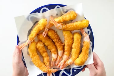 Zart gebratene Garnelen mit Zwiebeln, aromatisch gewürzt.