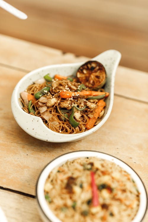 Wahlweise Nudeln oder Reis mit frischem Wokgemüse, aromatisch gebraten.